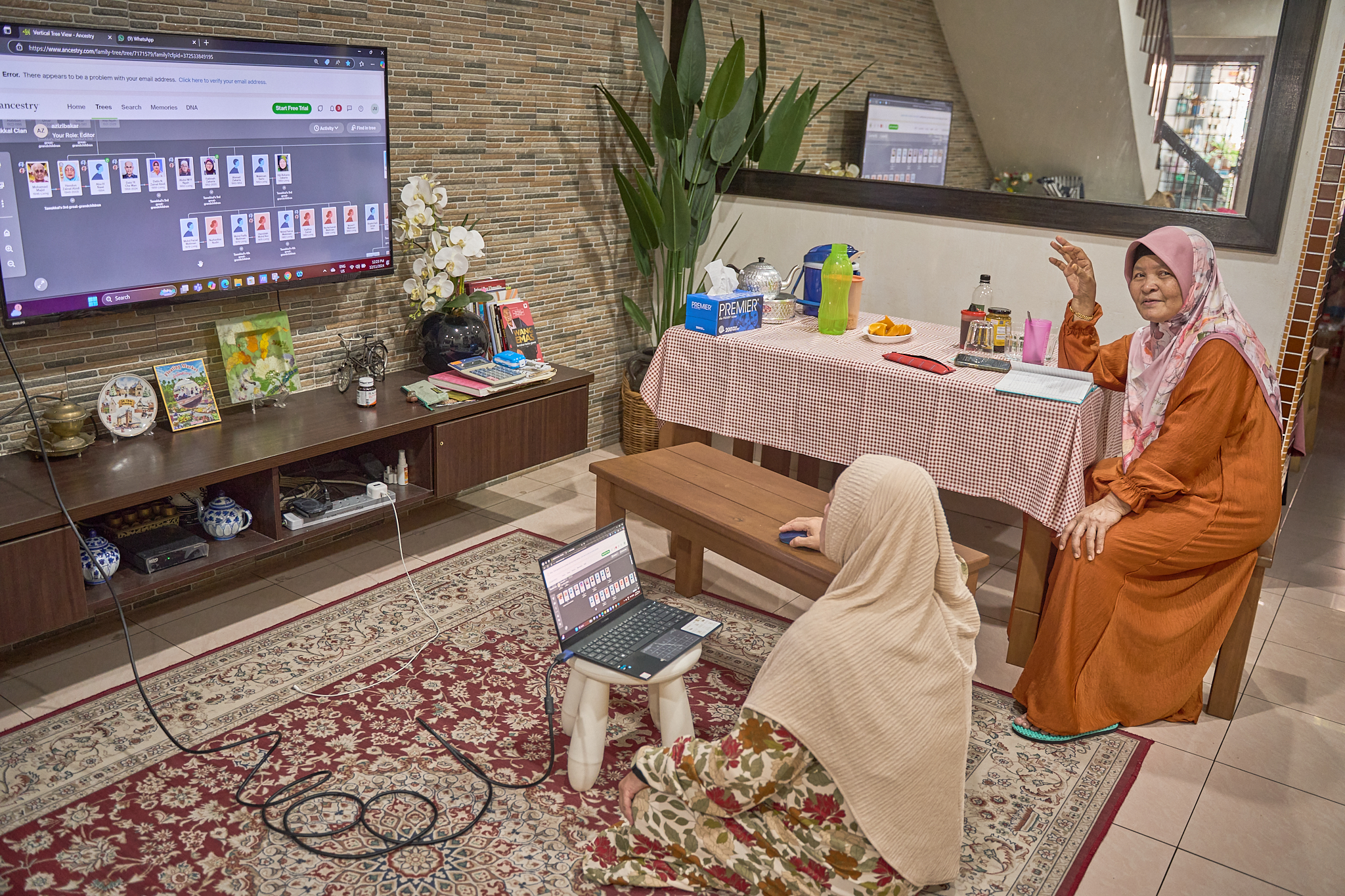 23 Nov 2024: Di rumah Mak Noor (Noorizam Mohd). Menunjukkan data salasilah Tawakkal kepada Mak Noor dan Mak Shabaha.